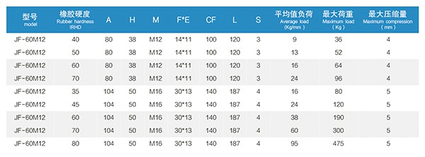 JF型橡膠減振器在軸向壓力及側(cè)向壓力可達到高度的減振效果,尤其用在發(fā)電機、引擎和系統(tǒng)方面,減振效果非常良好,運用范圍大約在25Hz (1.500 rpm )。